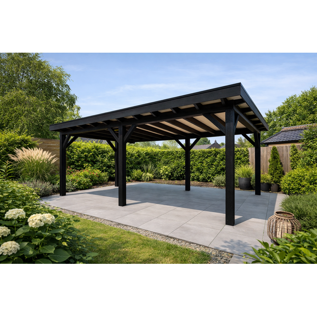 Met dit materiaalpakket bent u zeer flexibel bij het bouwen van uw overkapping. De overkapping kan eventueel nog op maat worden gemaakt. Ook kunt u bijvoorbeeld Douglas Zweeds rabat mee bestellen bij uw overkapping. Deze zijn ook leverbaar als zwart rabat. Bouw met dit materiaalpakket zelf een terrasoverkapping van Douglas hout met een afmeting van 6x3 meter.
