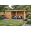 Douglas terrasoverkapping 7×3,5 meter mét schuur – compleet bouwpakket