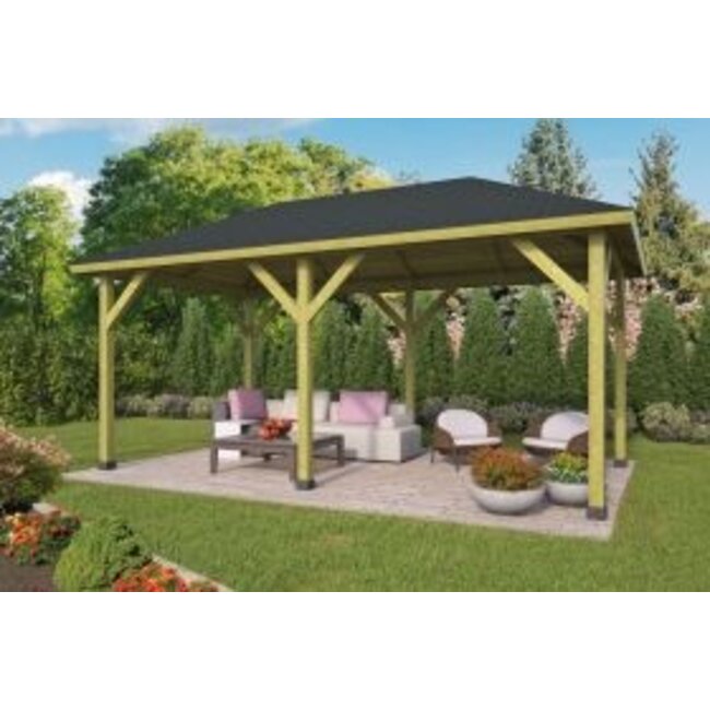 Prieel superieur is een groen geïmpregneerd geschaafd vuren overkapping met Schilddak. De afmeting van deze prieel overkapping is 590x340cm. Lees meer.
