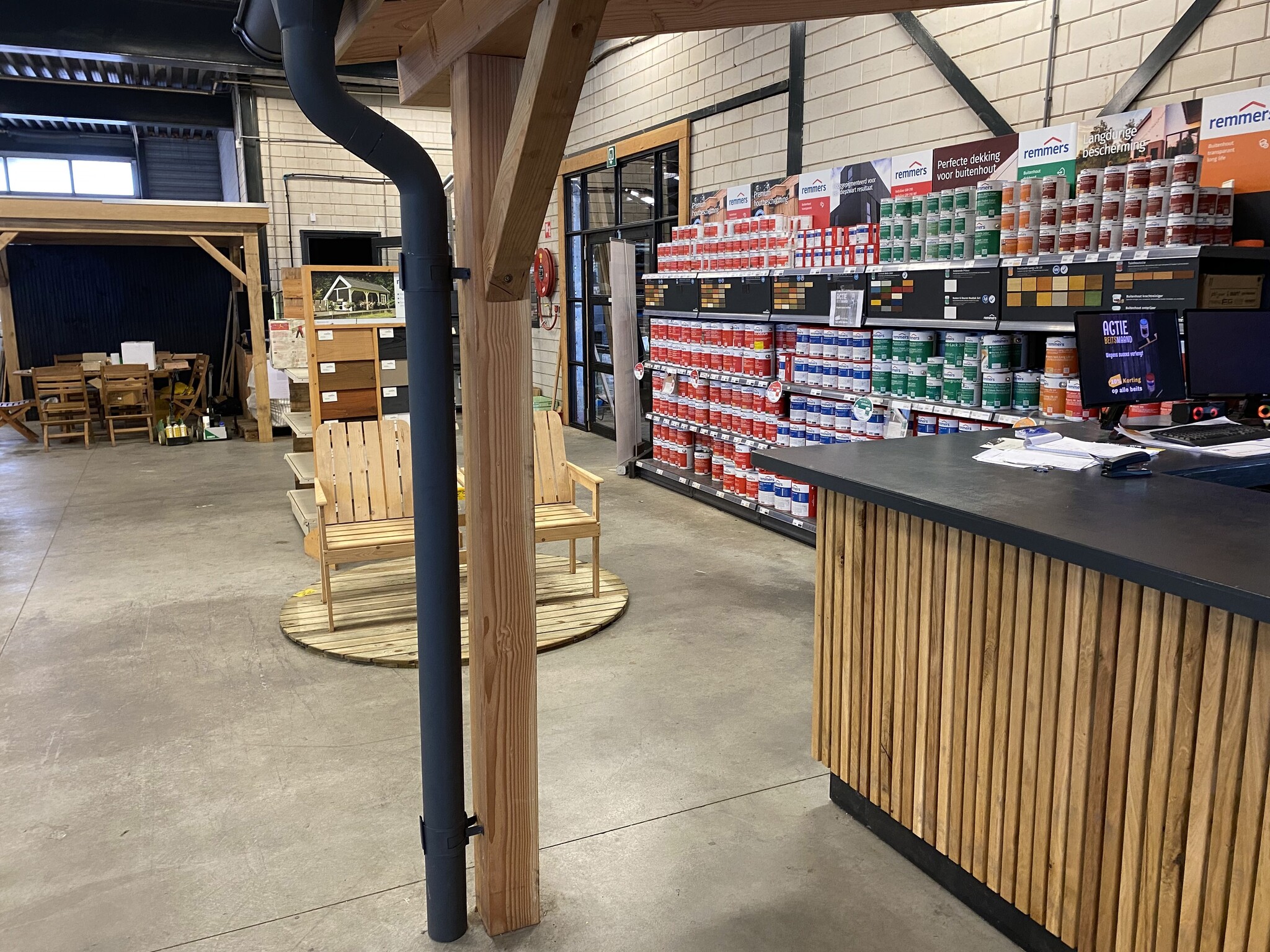 In onze winkel kun je ook drie van onze showmodellen bekijken: een kap- of puntdakschuur, een polycarbonaat veranda en een overkapping. Deze modellen geven je een goed beeld van de mogelijkheden die wij bieden op het gebied van maatwerk houtbouw.